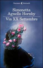 Via XX Settembre si trova poco lontano dal teatro Politeama, nel cuore di Palermo: è qui che nel 1958, lasciata Agrigento, viene a vivere la famiglia Agnello. Simonetta ha tredici anni, sta per entrare al ginnasio – il trasferimento è stato deciso per offrire a lei e alla sorella Chiara una vita più stimolante: le scuole migliori, i concerti, le serate al cinema, la casa dei cugini amatissimi a pochi passi. A Palermo si instaura un nuovo equilibrio familiare – il padre è spesso assente per seguire la campagna, ritmi e abitudini sono dettati con ferrea dolcezza dalla madre. A ribadire la continuità col passato, il piccolo mondo fatto di zii, cugini, persone di casa, amici, parenti: un microcosmo indagato con occhio attento, cercando – dietro sguardi, gesti e mezze frasi – anche il non detto. Sullo sfondo, ma in realtà protagonista, una città in cui alle ferite della guerra si stanno aggiungendo quelle, persino più devastanti, della speculazione edilizia. Fastosa e miserabile, Palermo seduce Simonetta: la stordisce di bellezza e di profumi, la ingolosisce con le fisionomie impassibili dei pupi di zucchero e l’oro croccante delle panelle. Nondimeno si insinua la percezione di un degrado sempre più evidente. La città le si rivela mentre lei si rivela a se stessa, attraverso un mondo muliebre vivissimo, compatto, solidale, attraverso l’amore per i libri, attraverso i primi barlumi di una coscienza civica e politica. Imboccata via XX Settembre, la formazione si consuma dentro un taglio prospettico che va oltre Palermo e la Sicilia: l’incombere del distacco che porta Simonetta in Inghilterra lascia intravedere una nuova maturità, una nuova esistenza. Fatto di memoria, dentro la memoria, questo romanzo organizza la materia autobiografica all’interno di un disegno che è innanzitutto il processo di un’educazione sentimentale, di un’appassionata storia di famiglia che muove i fantasmi del cuore e li consegna alla parola, alla struggente immortalità del racconto.